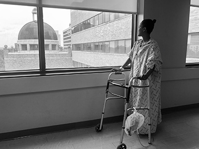 My fighters… Wow! Not even a week later, catheter in her bladder, drain on her other side, IVs everywhere, she was up walking and pushing forward.